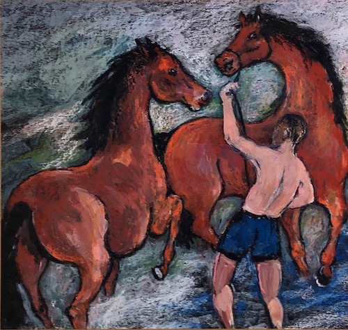Ein Mann kümmert sich um seine beiden wilden Pferde. Er möchte Sie zureiten, damit sie ihm dienstbar sind. Dabei schaut er dem Linken in die Augen: „Hab keine Angst – ich möchte Dein Vertrauen gewinnen. Du gehörst zu mir und ich werde mich um Dich kümmern!“. So begegnet uns Jesus, der HERR – liebevoll und voller Hingabe.